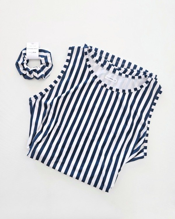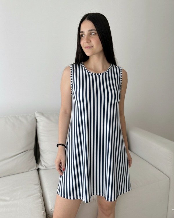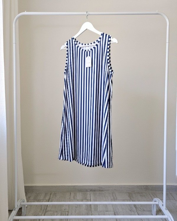 Camisón sin mangas, ideal para el verano, confeccionado en modal soft, con un estampado clásico azul Marino y off white. Rayado vertical.