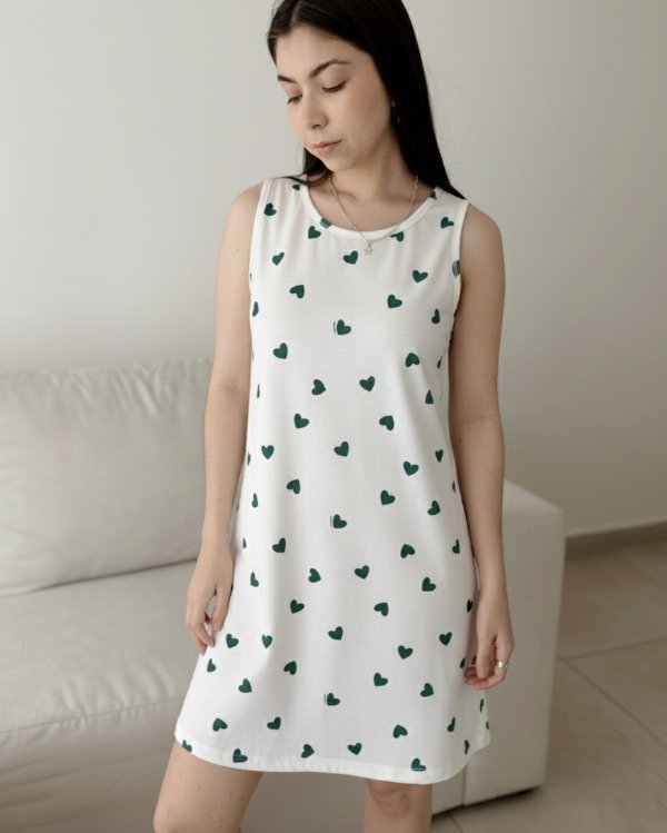 Camisón sin mangas, ideal para el verano, confeccionado en modal soft, con un estampado vibrante de inspiración tropical.