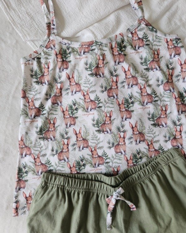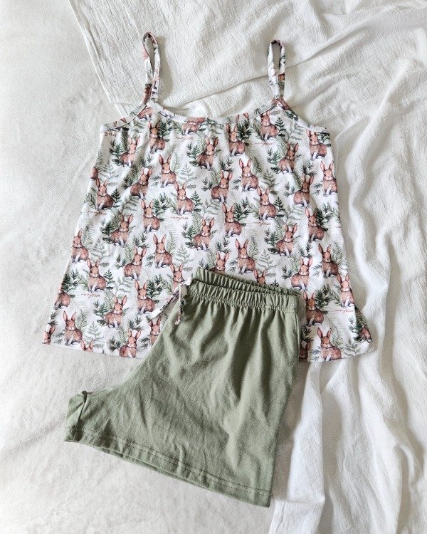 Conjunto de pijama de dos piezas, musculosa con breteles regulables, ideal para el verano.