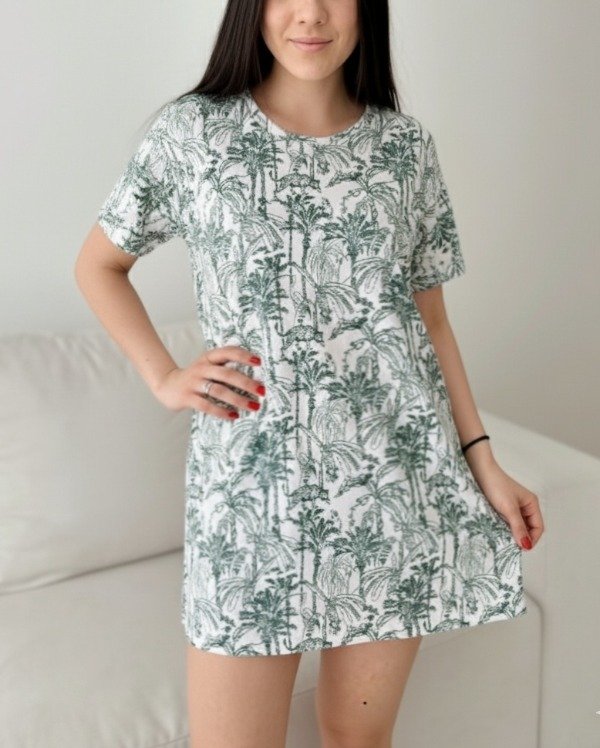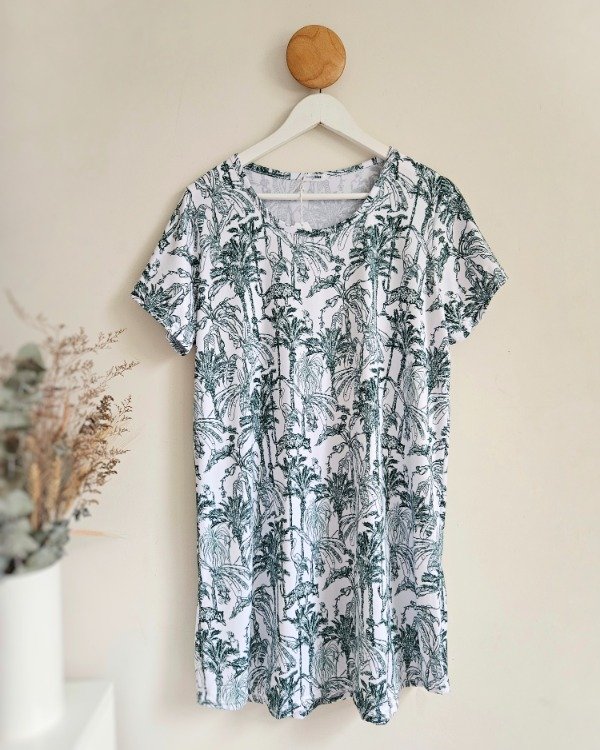 Camisón con mangas cortas, confeccionado en modal soft, con un estampado vibrante de inspiración tropical. TALLE ÚNICO.