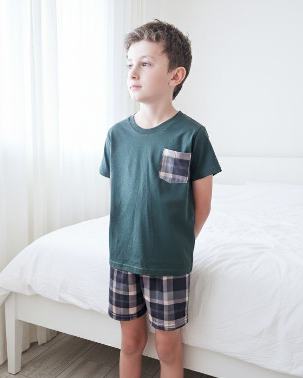 Conjunto 100 % algodón remera + short cuadrille modal soft.